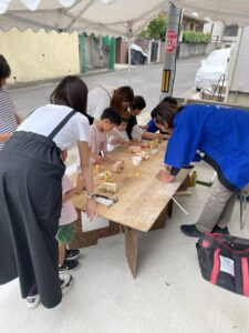 いつもの木村まつりでやっていたスーパーボールすくいや、射的、輪投げ、DIY、野菜市場に加え初めてバザーを開催。そして協力会社様がタコスやフランクフルトのお店、塗り壁体験コーナーを出展してくださり大盛況でした。