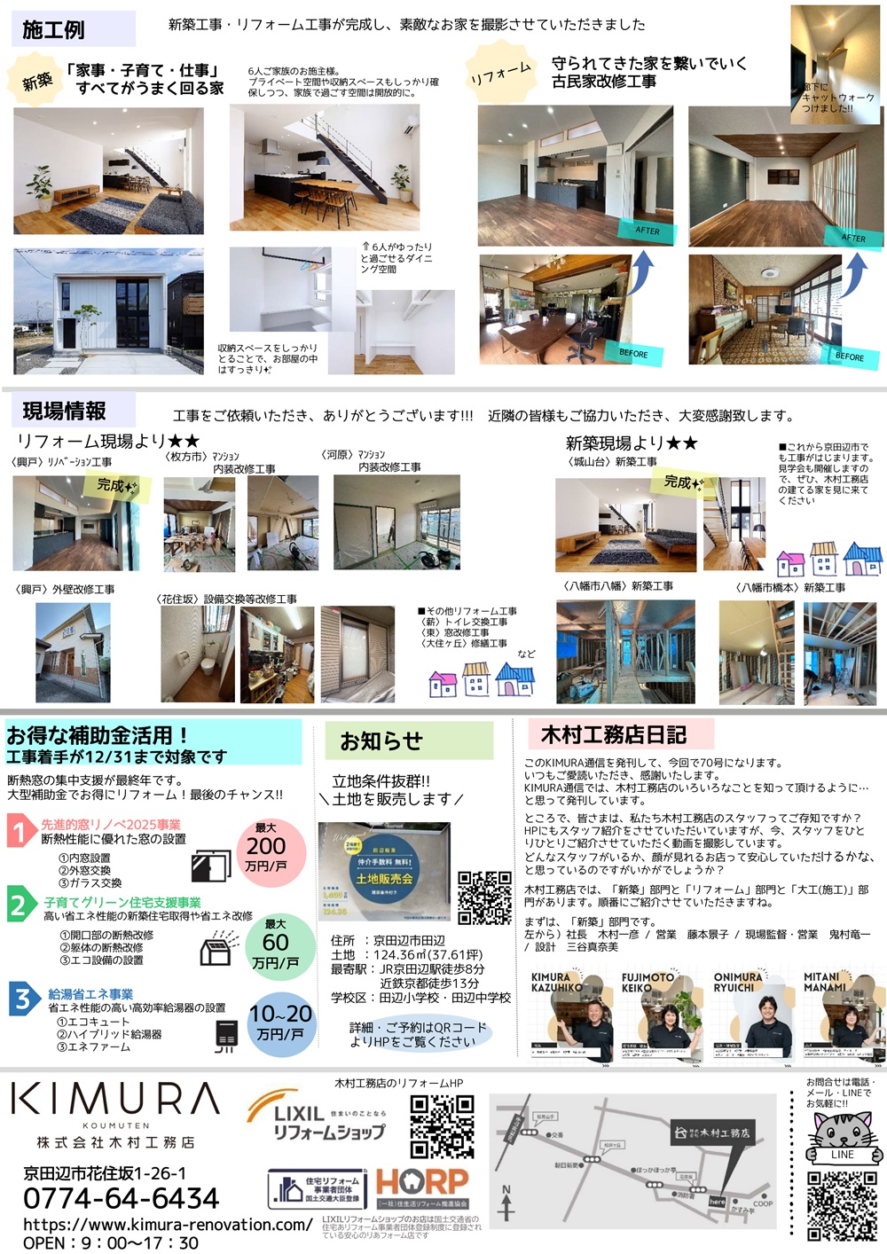 裏面では、今回は新築・リフォーム共に完成施工例があったので、紹介させていただいています。