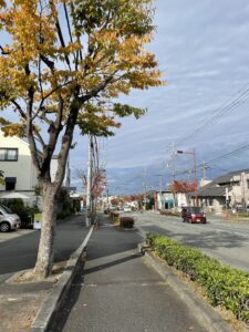 木村工務店の前の道の街路樹も紅葉してくれるのですが、最近は落ち葉との闘いです。