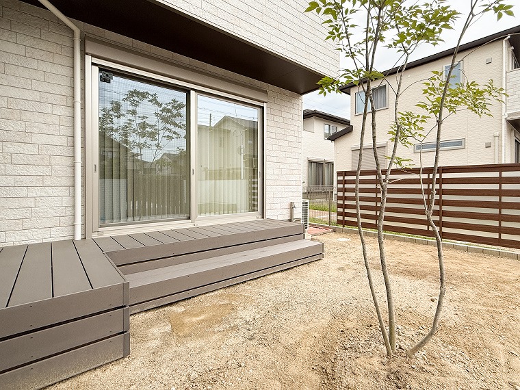 グレーウッドカラーがお家の外壁とも調和がとれ、ガーデンスペースがワンランク上のおしゃれ空間になりました。